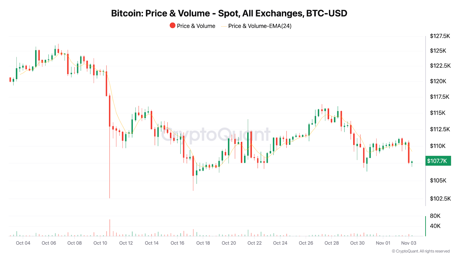 Der Markt der digitalen Assets navigiert inmitten nachlassender geopolitischer Spannungen und inländischer wirtschaftlicher Hürden durch gemischte Signale. Bitcoin fiel heute (3. November) unter 108.000 $, konnte trotz breiterer Volatilität keinen wöchentlichen Zuwachs erzielen, was aktuell für verhaltene Investitionen spricht, während Anleger die makroökonomischen Entwicklungen beobachten.